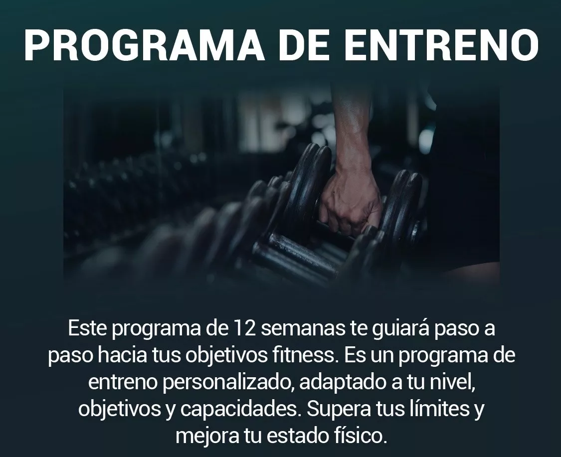 Entrena con un plan 100% personalizado, acceso a mi curso y mi app, y con mi acompañamiento directo durante 12 semanas para que mejores tu técnica, avances con seguridad y transformes tu cuerpo entrenando en el gimnasio, en casa o donde quieras
